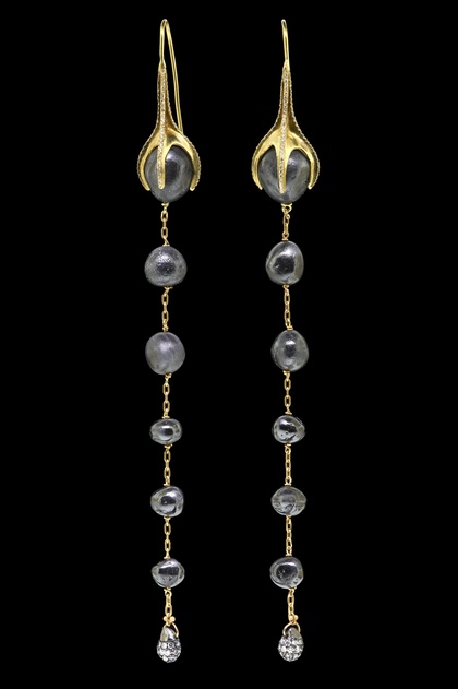 Genuine mother-of-pearl, gray freshwater pearls, glass & stone nuggets in shades of gray, dark pearl, black, khaki, and taupe deliver a natural neutral complement to your wardrobe. Necklace is 16 inches long plus a 3-inch extension. BLACK DIAMOND earrings and necklace. ... View Full Source